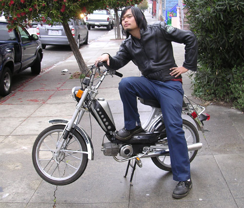 The Creatures of the Loin are liberators of the forgotten moped, swarming frequently and encouraging havoc among and emptiness inside the souls of the cagers/gas-guzzlers who try to kill them every day. One summer morning five of them decided to leave the majestic scenery of the Tenderloin district for the less breathtaking coastal lands north of the City on a 49.5 cubic-centimeter motto-journey to Seattle. Their starting point was an abandoned mental institution, and their brethren from across the country would await them on the other side, 1000 miles north. Come bear witness to the wake of photographs, spray paint, knives, ill-advised chaps, and small-displacement motor destruction overcome by improvised technologies. MOPED ARMY – SWARM AND DESTROY